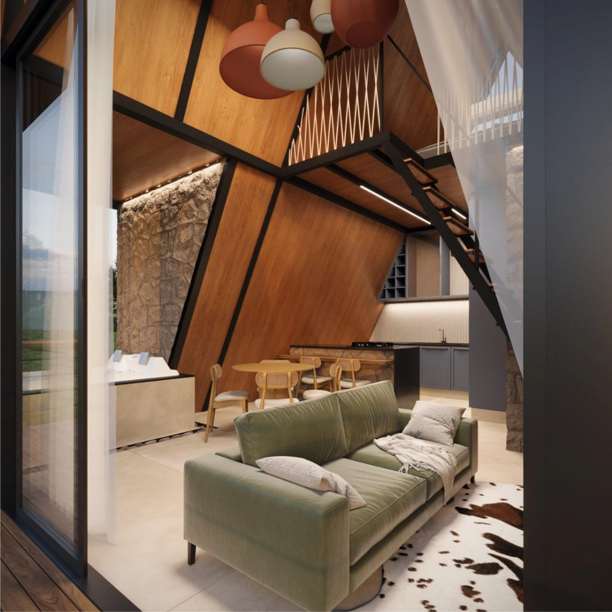 Cada detalhe foi pensado para oferecer conforto absoluto sem perder a essência rústica e acolhedora.